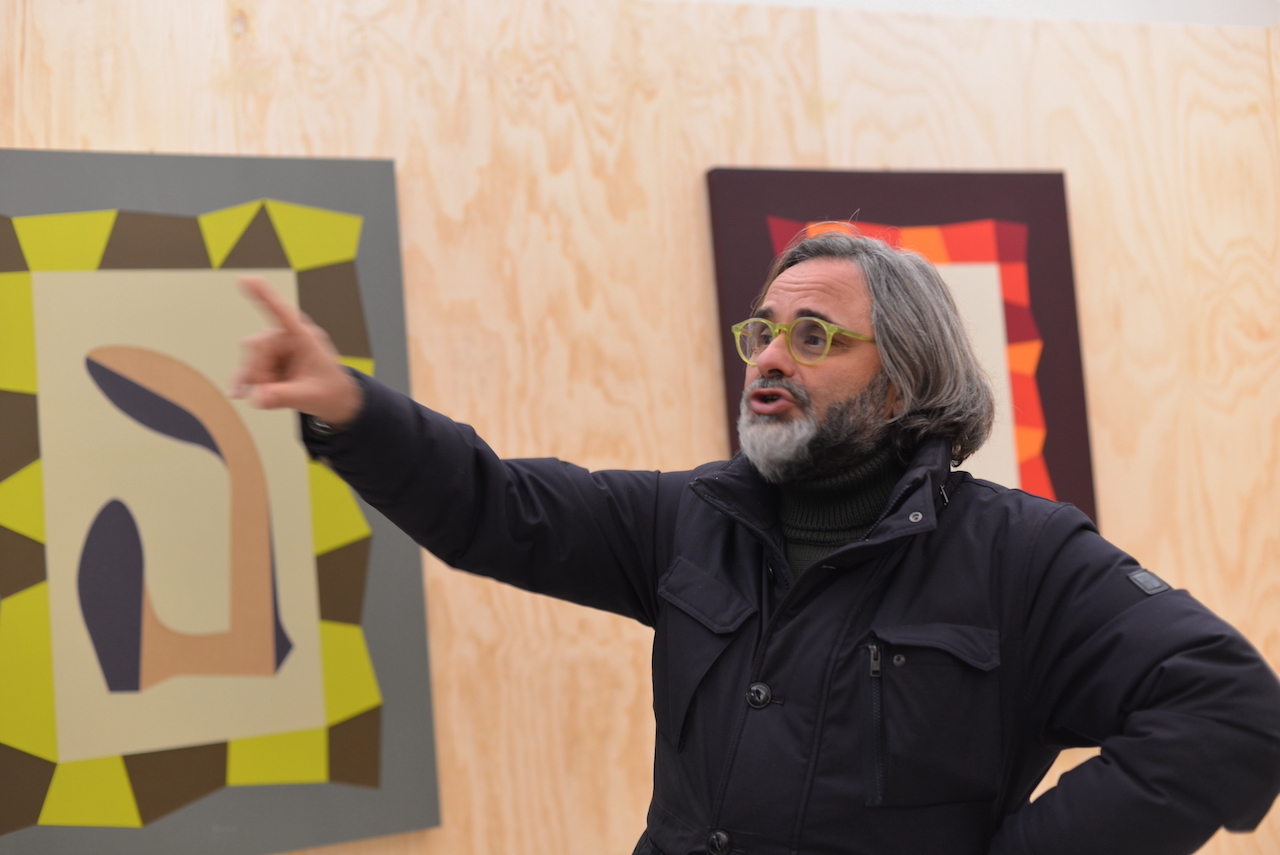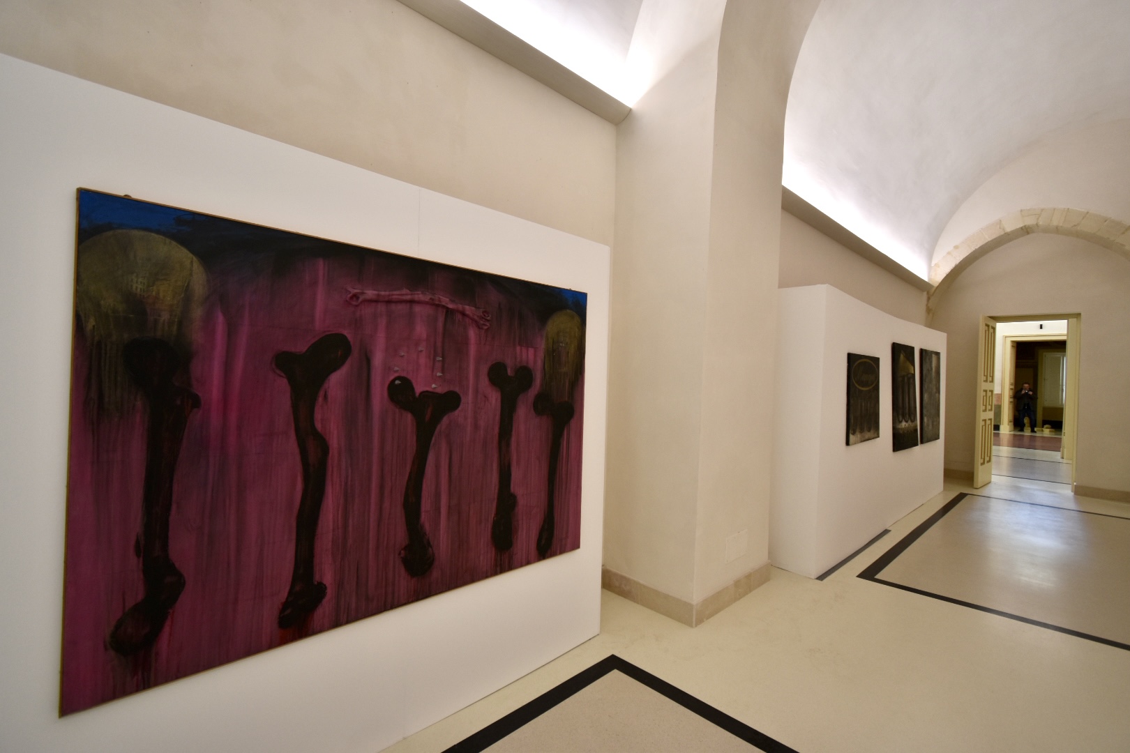 Artista colto e ironico, dotato di grande empatia e – anche per questo – in grado di comunicare ricerca artistica e conoscenza a 360° al grande pubblico, di lui si può vedere l’articolato e complesso lavoro di ricerca in questa mostra ciclopica curata dal bravissimo Donato Faruolo e organizzata e finanziata dalla Fondazione Porta Coeli di Venosa (PZ): dall’antica passione per la grafica alla ricerca concettuale basata sul paradosso creativo, dalle installazioni nei teatri fisici e metafisici del mondo alla recente pittura, una delle più potenti e raffinate che ci sia in circolazione al momento (di cui i miei collezionisti posseggono opere davvero illuminanti).