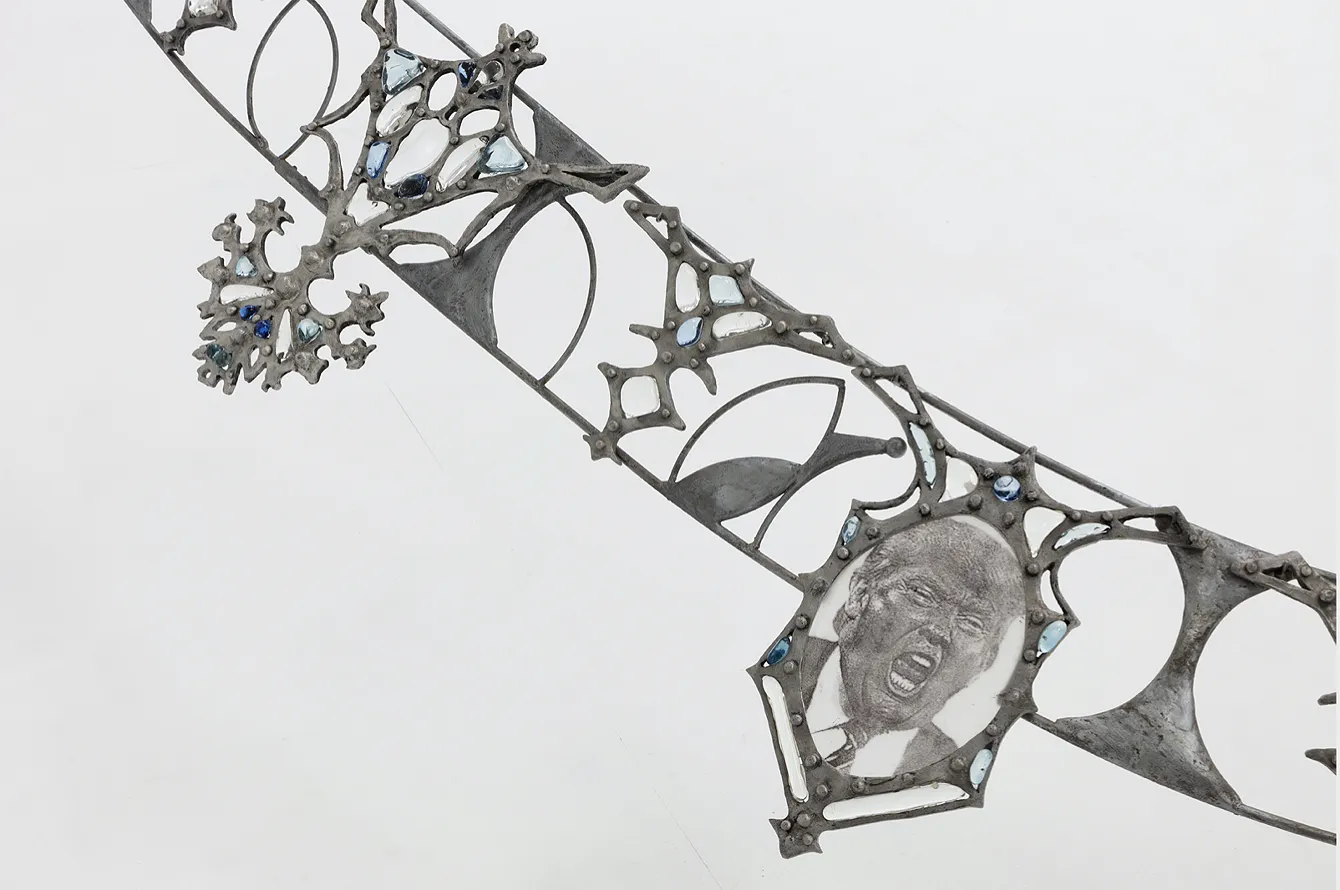 Portando l’attenzione alla serie installativa annoverata, ecco lo schiudersi deciso e impattante di un universo ideativo, potentemente intellettuale nel richiamo costante alla realtà e alle sue più tediose dinamiche. Come per il più luminoso dei cammei, ad occupare gli spazi delegati di un pregiatissimo collier (dalle dimensioni iperboliche e fuori scala), sopraggiungono i volti istituzionali dei cosiddetti grandi e potenti della Terra.