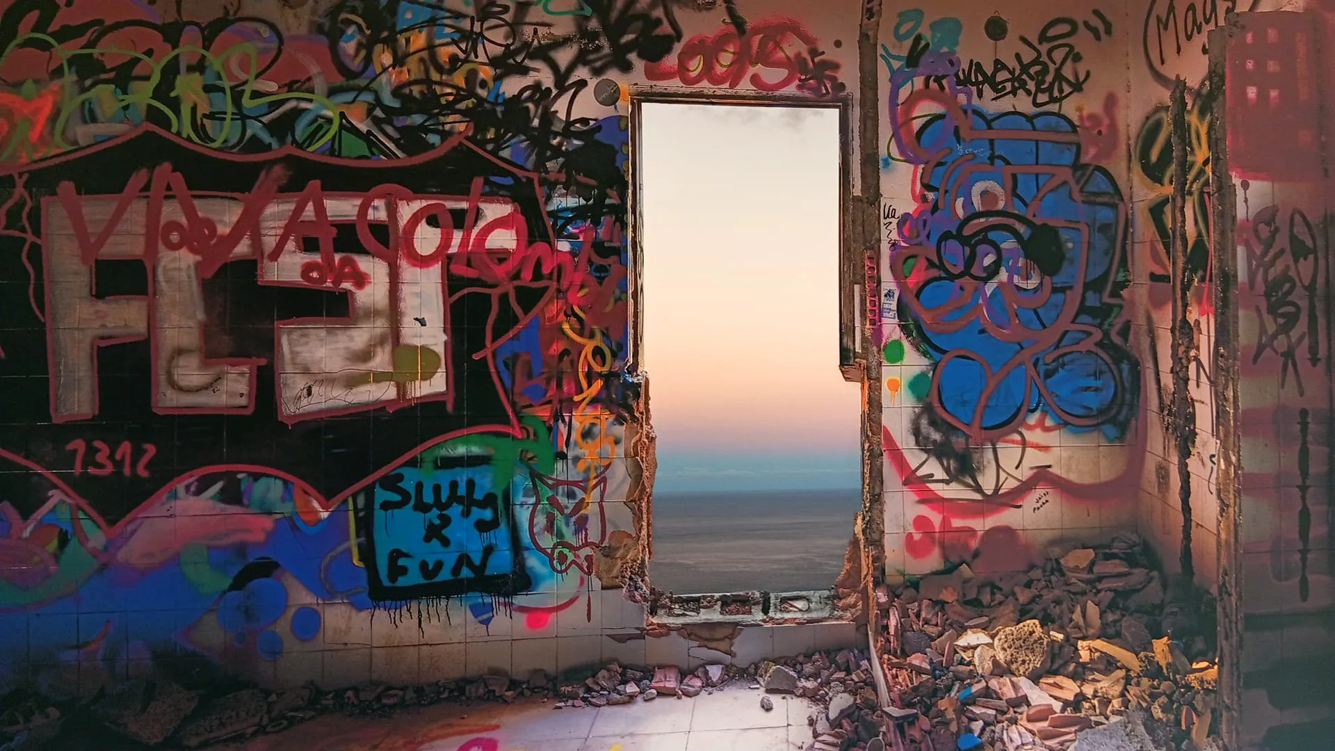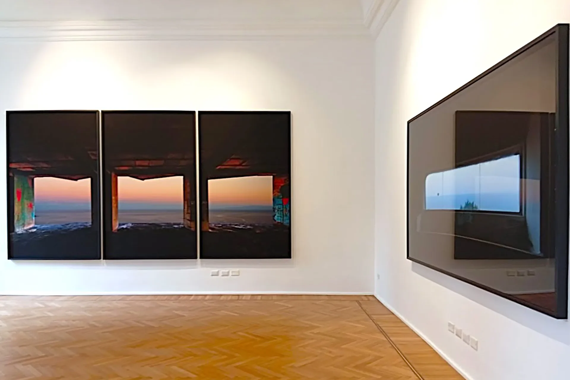 Il paesaggio ritratto ha una sua rilevanza così come ciò che lo rivela e lo incornicia, ovvero strutture abbandonate, architetture diroccate, talvolta bunker che aprono su scorci di cielo, di mare, vedute luminose, gioiose, oppure all’imbrunire e volte al desio.