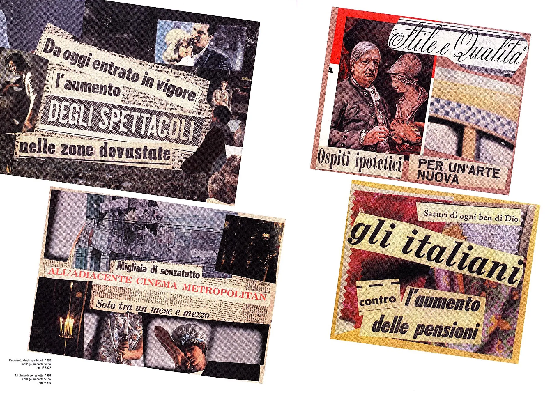 «una poesia che ricerca dei rapporti fra materiale verbale e materiale VISIVO, ambedue i materiali per lo più tratti e “rigenerati…” da quotidiani e rotocalchi».